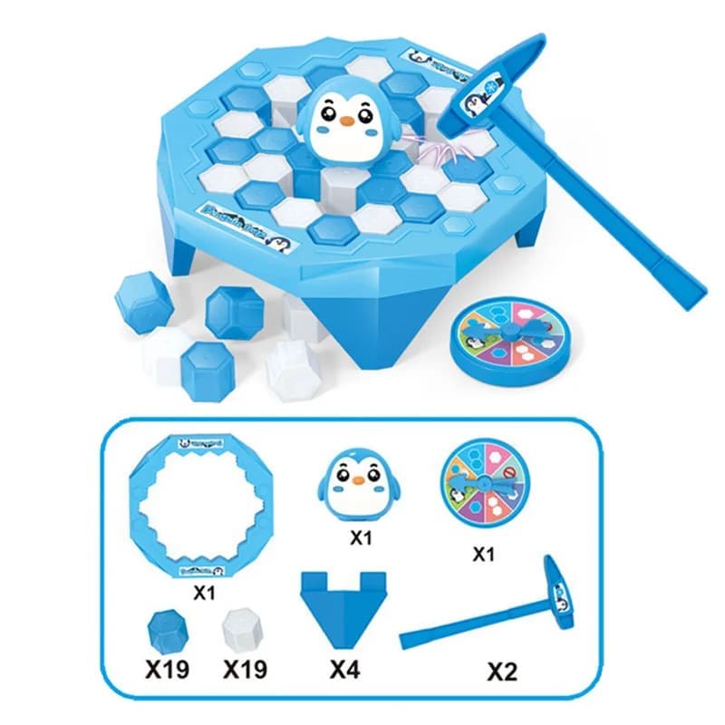 Design: Mini pinguim em blocos de gelo, jogo de equilíbrio para 2 jogadores, divertido e interativo