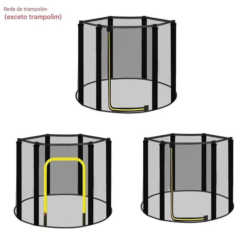 Design: Rede de proteção para trampolins, com 6 postes de 1,2/1,4/1,5m, oferecendo segurança e estabilidade durante a brincadeira