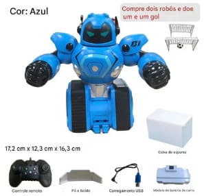 Incluso na embalagem: Robô, controle remoto, carregador USB, pilhas e manual
