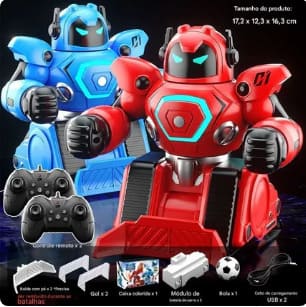 Recursos: Luta de robôs interativos, controle remoto, carro elétrico com servo de direção e acelerador
